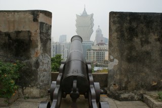 O Grand Lisboa, por exemplo, na sua forma de lótus destaca-se e aparece onde quer que estejamos, seja escondido atrás do edifício dos correios na Praça do Leal Senado, seja atrás de um canhão no Forte do Monte. Aqui de cima conseguimos ter uma percepção exacta do que se tornou Macau, um cenário confuso e desordenado de edifícios altos e não muito bonitos, que nos tira finalmente as dúvidas: isto é Ásia e estamos bem afastados de Portugal. Mesmo que se consiga facilmente um pastel de nata ou um pastel de bacalhau para se dar uma trinca.
