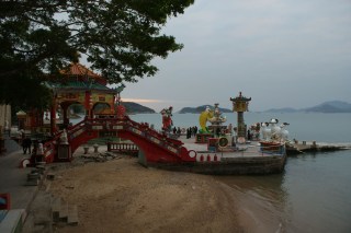 Nesta, ao fim daquela tarde, com o sol já a querer fugir, apesar de sentir tudo menos calor pareceu-me que este seria o local ideal para o primeiro mergulho do ano. Não se proporcionou, porém. Daí a umas poucas horas iria enfrentar o quase dia inteiro de viagem de volta para casa. Não sem antes assistir a mais uma explosão de cor e fantasia com o Santuário Kwun Yam, bem ao fundo da praia.