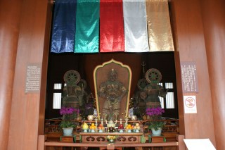 Dentro dos pavilhões vemos estátuas reluzentes e enormes dos bodhisatvas e outras divindades budistas.