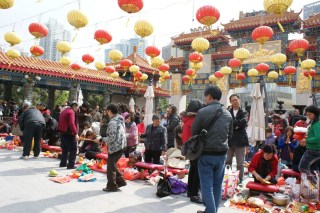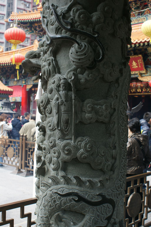 A este templo taoista, mas com influências confucionistas e budistas, vem gente de todos os estratos da sociedade de Hong Kong, fazendo-se acompanhar de oferendas como frutas e outros alimentos para as suas divindades. Acendem os seus pauzinhos da sorte e rezam.