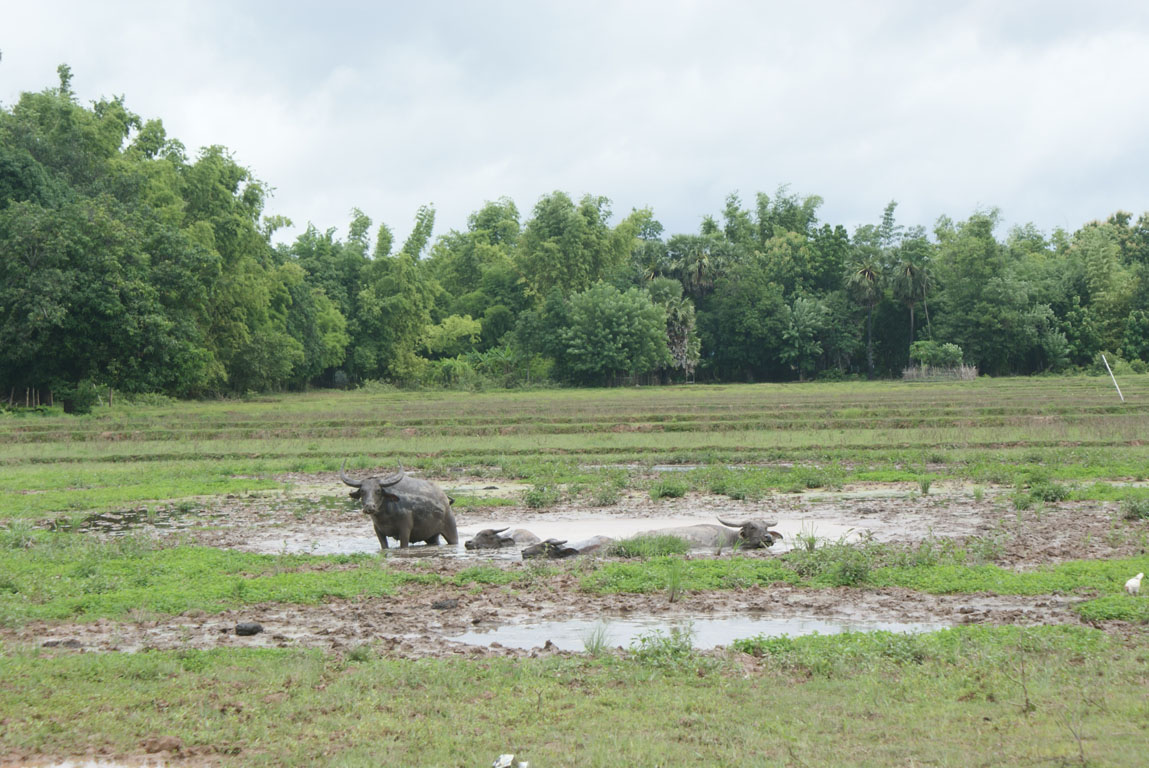 Mais perto de Pakse, e na direcção contrária de Champasak, fica Ban Saphai, donde se atravessa de barco até à ilha de Don Kho. Este lugarejo de cerca de 300 habitantes, onde se pode experimentar um homestay, chegou incrivelmente a ser a capital do sul do Laos quando os franceses chegaram. É difícil encontrar vestígios de centro de poder neste local. Percorrendo os seus caminhos vamos vendo uma vida pacata, as senhoras a tecer nas suas casas e os senhores a dedicarem-se ao arranjo dos motores dos barcos. As crianças brincam. Os búfalos idem. Infelizmente os arrozais não estavam operacionais aqui. Interessante como o clima pode mudar tanto de um local próximo para o outro. De Pakse a Ban Saphai vamos passando por diversos arrozais. Quando se sobrevoa Pakse – e até Savanaketh – o mesmo cenário. Mas a ilha de Don Kho láterá um microclima qualquer e arrozais naquele dia, nicles.
