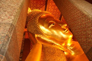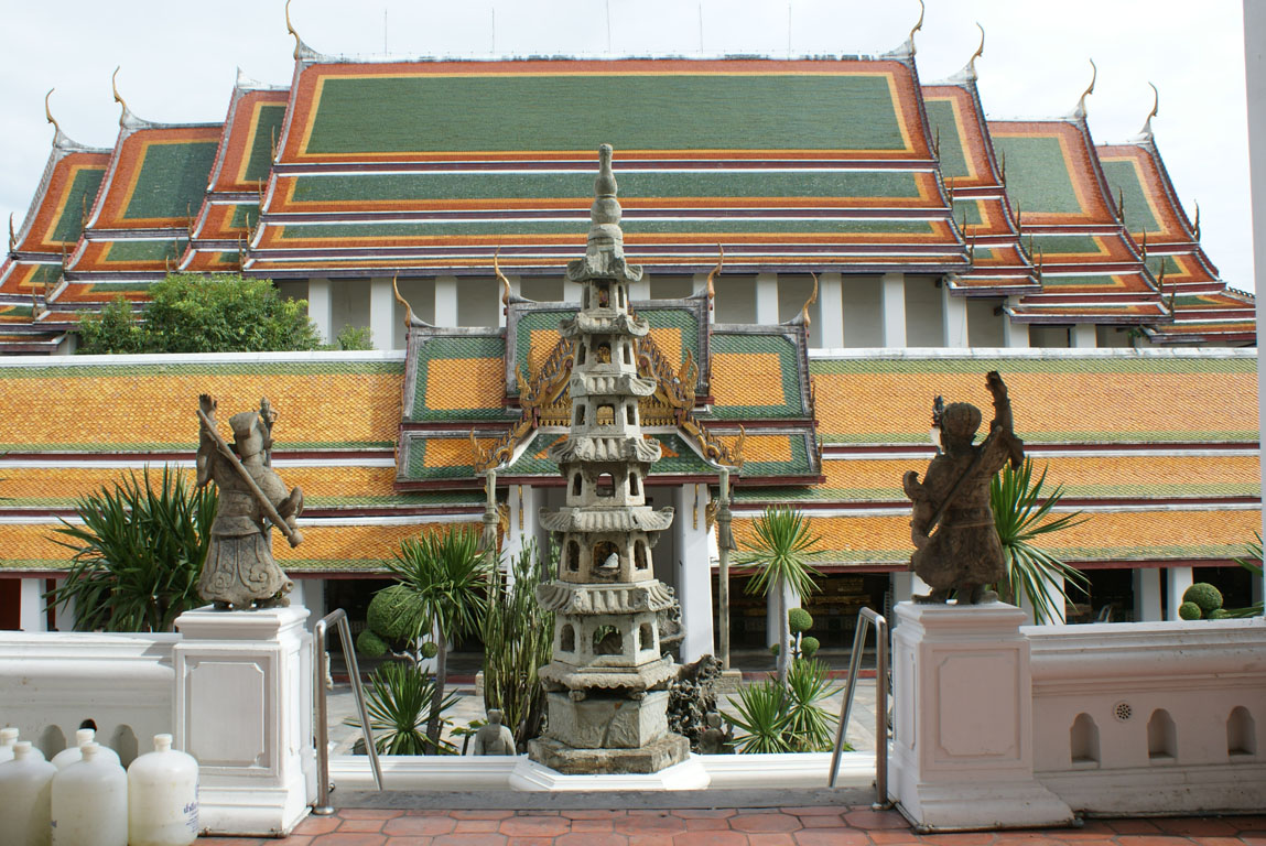 Na zona de Banglamphu fica o Wat Suthat, o primeiro que visitámos em Banguecoque (leia-se: ainda não estávamos enjoados com tantos wats), o qual possui a maior capela da Tailândia. A diferença para os wats que havíamos visitado no Laos é marcante. Sem retirar a beleza a estes últimos, o estilo é semelhante, mas os de Banguecoque são mais requintados e mais delicados nos seus pormenores. Os Budas, de todos os tamanhos e diferentes posições, esses, são presença constante em todos os wats, sejam de Banguecoque ou de uma qualquer cidade do Laos.