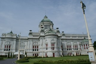 Antes de visitarmos o centro histórico, conhecido como Ko Ratanakosin, onde fica o Palácio Real e o Wat Phra Kaew, demos uma saltada até ao Palácio Dusit. Este é uma criação do primeiro rei tailandês a visitar a Europa, no fim do século XIX, daí a hibridez da sua arquitectura, um misto de estilo europeu com thai, tendo ficado conhecido como a Versalhes de Banguecoque. O seu interior é luxuoso, com deslumbrantes tronos em ouro. À volta do Dusit, no parque de mesmo nome, existem uma série de edifícios, mas o mais delicado éa Mansão Vimanmek, diz-se que a maior construção em teca do mundo. Esta foi a residência real e olhando para o mimo que é tanto o seu exterior como o seu interior custa a crer que alguém tenha feito dela museu e não a queira só para si. Obrigada, em todo o caso.