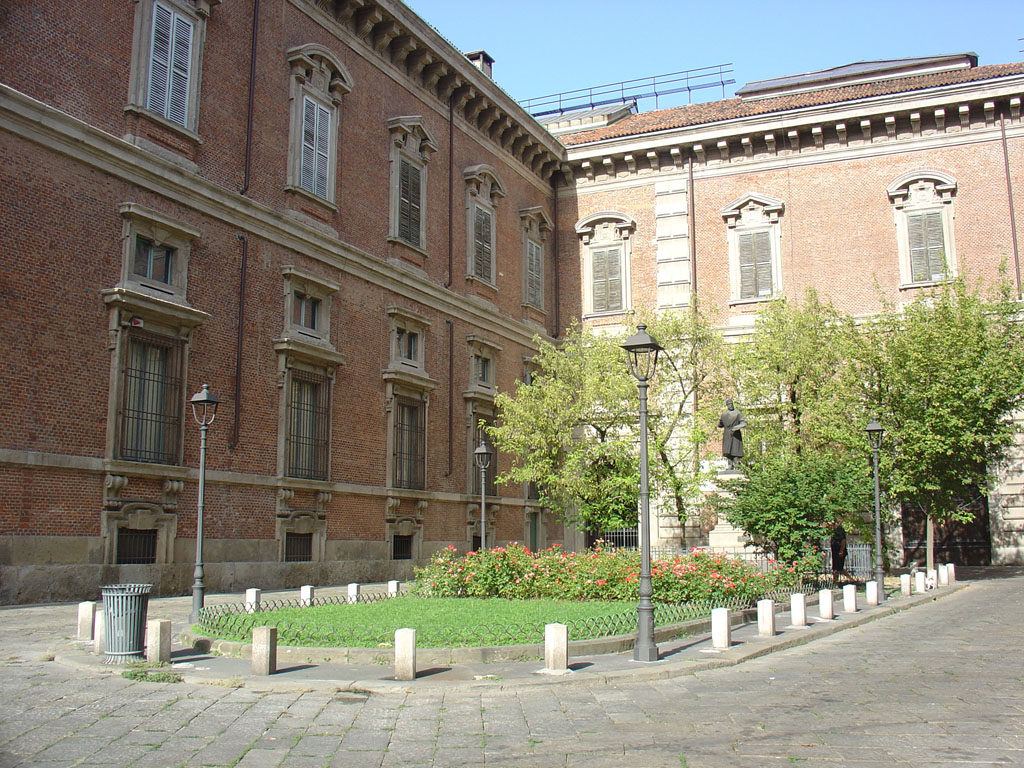 A entrada principal da Galeria é efectuada ou pela Praça onde fica o Teatro Alla Scala ou pela Praça do Duomo. O exterior do edifício do Scala não me pareceu nada de especial. Quem sabe não me possa seduzir pelo seu interior numa das óperas que um dia, quem sabe, lá assistirei. Já o edifício que ocupa o lado contrário da Praça, o Palácio Marino, do século XVI, é especialmente bonito, sobretudo os pormenores da sua fachada.