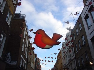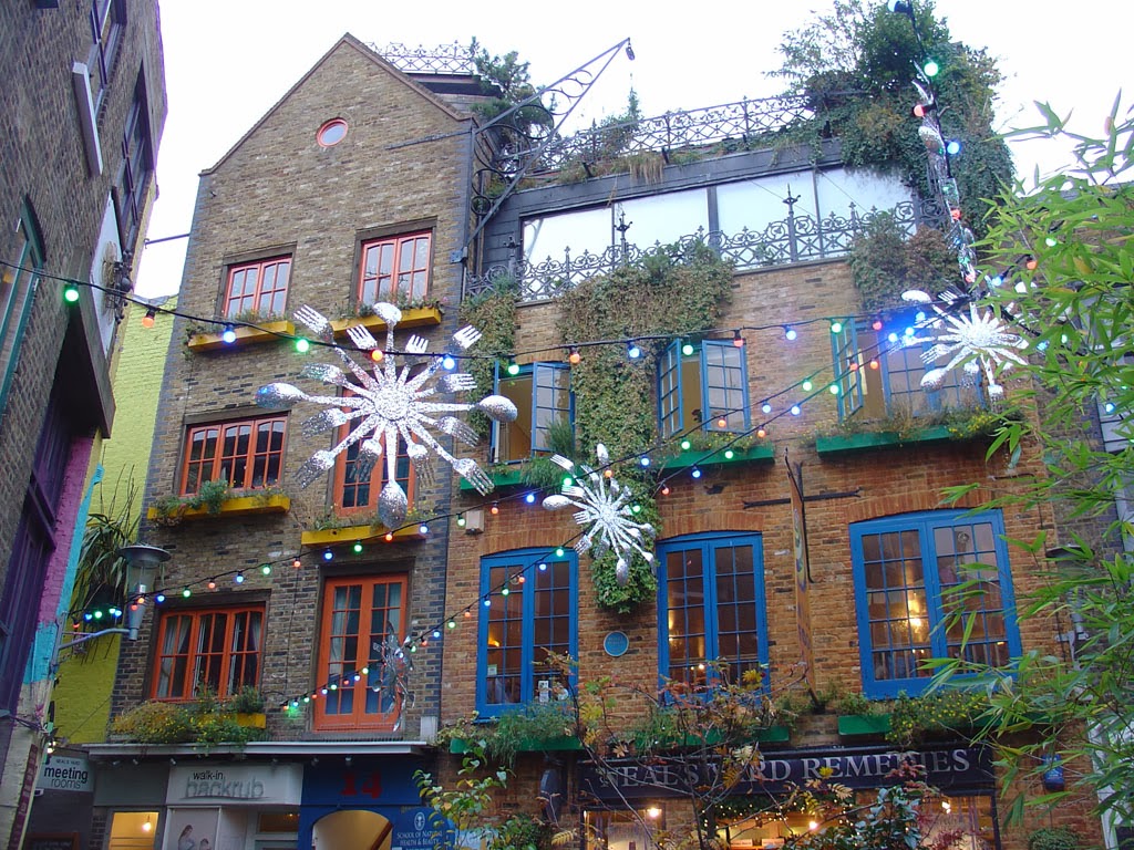 Segui para o Soho, com a Carnaby Street enfeitada como sempre. Daí uma agradável caminhada atéao norte de Convent Garden para conhecer um cantinho que atéhoje me havia escapado – o Neal’s Yard. É um pátio cheio de cafés e lojas pitorescas envolvido por prédios coloridos. Muito bom contraste com aquele fim de meio de tarde, sol (?) a cair a modestas 16 horas.