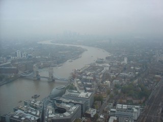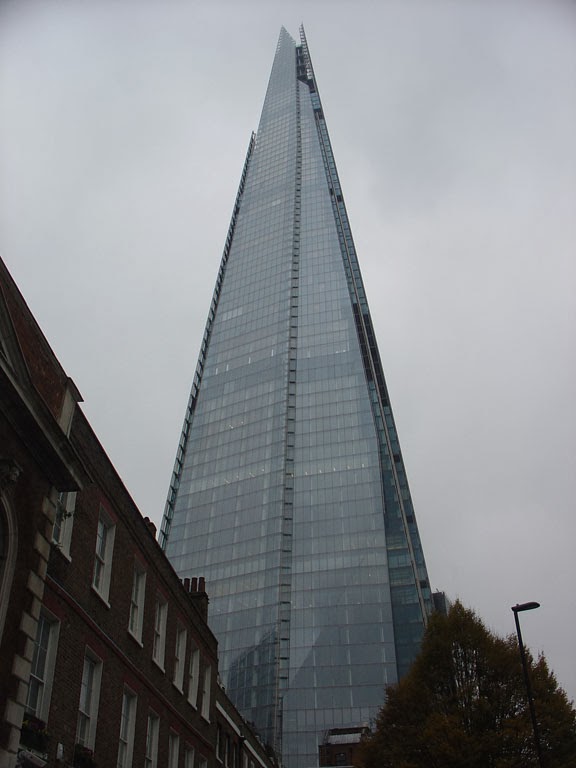 Este The Shard é uma torre em forma de seta em direcção ao céu inteiramente de vidro. O seu topo parece inacabado, mas éapenas ilusão de óptica. A vista lá de cima (o elevador para no andar 68, mas nós subimos mais dois ou três andares) abriu ao público em Fevereiro deste ano e é um sucesso, pese embora os cerca de 30 euros de entrada se o bilhete for comprado com antecedência.