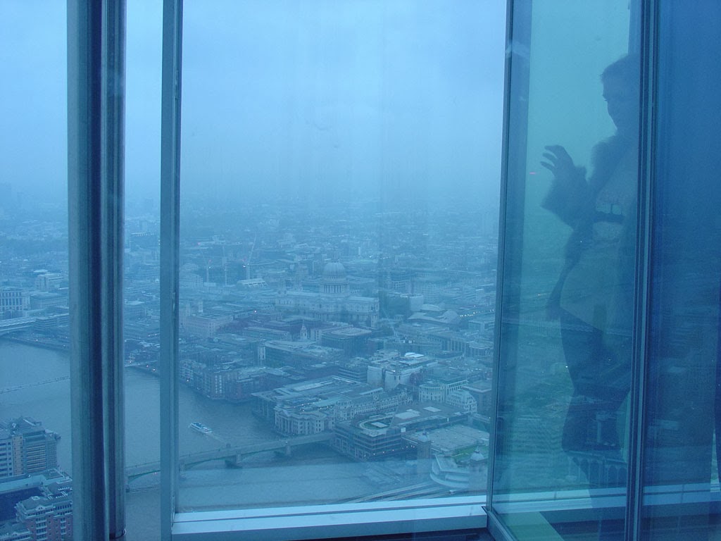 O resto da Tate estava igualmente impossível para se circular, dai que sem pena tenha seguido rapidamente para o The Shard, mais especificamente para o seu 68 andar, através de uma supersónica ascensão num foguetão. Bom, não éassim tão futuristico, era apenas um elevador, mas rapidíssimo na mesma. O The Shard é actualmente o segundo edifício mais alto da Europa (o primeiro fica em Moscovo) e foi projectado por Renzo Piano, o mesmo do Pompidou de Paris. Mas um não tem nada a ver com o outro.