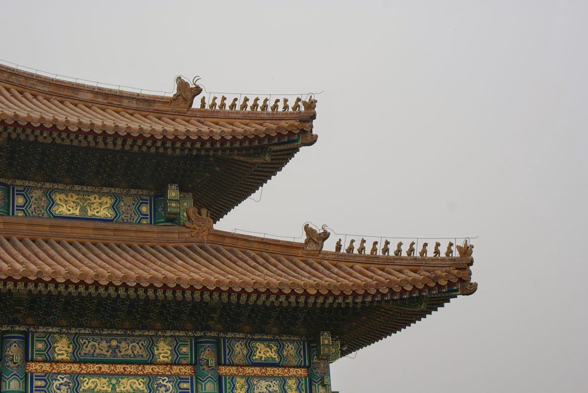 Um pormenor interessante. Cada edifício é decorado com umas pequenas e pitorescas estátuas, conhecidas como os guardiões, criaturas míticas que protegem o dragão imperial; a sua importância afere-se através do número que cada um apresenta – 10 é o máximo das estátuas e o máximo da importância (encontramos esta ideia não apenas nos edifícios da Cidade Proibida).