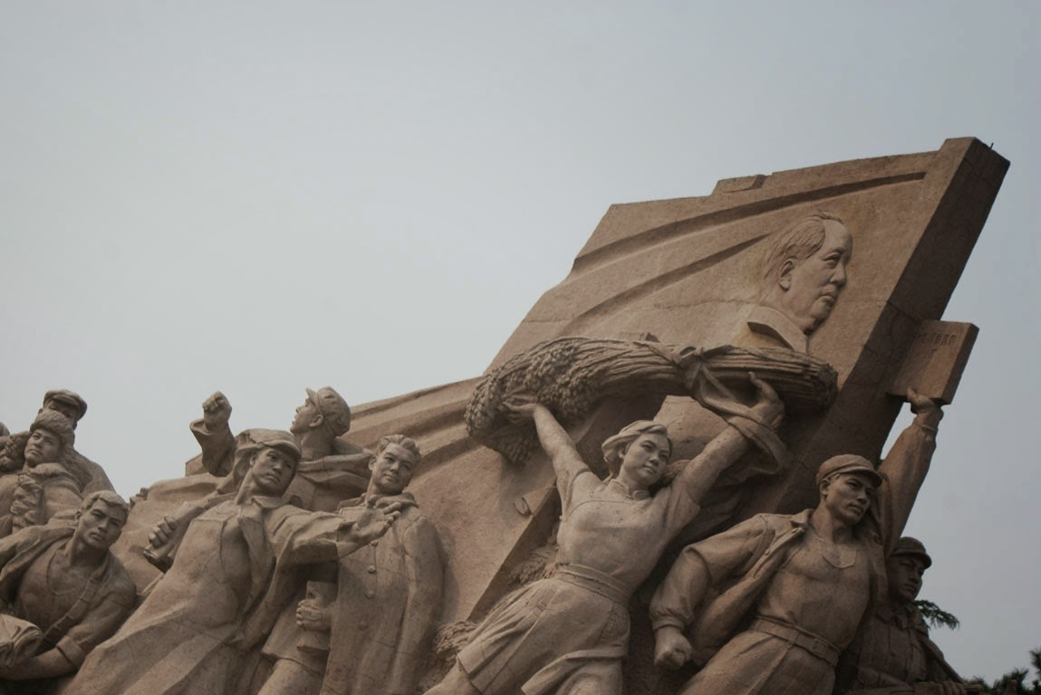 Nesta imensa praça, percorrida facilmente em meia hora para lá, dez minutos para o lado e mais meia hora para cá, fora as constantes filas para as revistas da segurança, fica a uma ponta as duas portas simbólicas da sua entrada e na outra a Porta da Paz Celestial, mais conhecida por acolher o retrato de Mao e ser a entrada da Cidade Proibida. Numa das partes laterais fica o Museu Nacional e na outra o parlamento e diversos edifícios governamentais. Aqui o estilo soviético impera. No meio da Praça, o Mausoléu de Mao. Para se chegar aqui, mais revista de segurança.