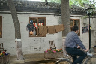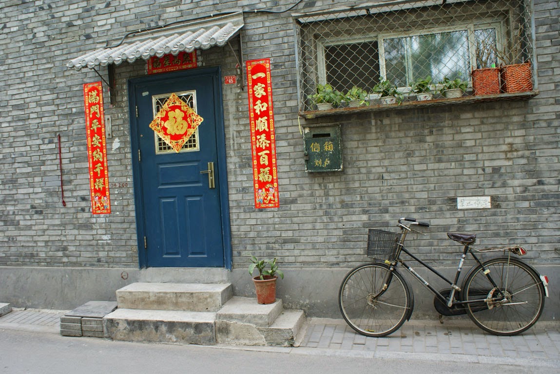No entanto, uma das melhores experiências que se pode ter em Pequim é caminhar pelos seus hutongs, as ruelas que ainda sobrevivem no centro da capital e onde podemos literalmente entrar pelas casas e vidas adentro dos locais. A rua e a casa confundem-se de tal maneira que quando damos por nós não estamos numa rua sem saída, antes na casa de alguém. À porta das casa, ou junto a uma janela ou tão somente parede, vemos uma bicicleta encostada, mas também roupa estendida ou um armário em uso. Historicamente, os hutongs são do templo dos mongóis, século XIII, mas cresceram com os Ming, século XV. Nos últimos anos muitos têm vindo a ser demolidos para dar lugar a edifícios e ruas mais modernas. Mas é ainda fácil darmos de caras com um hutong. A zona de Nanluogu Xiang será a mais evidente para explorar, até porque aqui foram bem sucedidas as tentativas de recuperação, mas um pouco por todo o lado eles existem. É só metermo-nos ao caminho e … ei-los. Por exemplo, no nosso primeiro dia em Pequim, um domingo, passámos a tarde na zona dos parques e lagos Houhai e Beihai – óptimos caso não se suporte estar sozinho. Alugámos uma bicicleta e fomos pedalando à volta do lago e um pouco pelo interior dos bairros. Foi logo, rapidamente sentimos um cheirinho daquilo que imaginávamos a China mais tradicional.