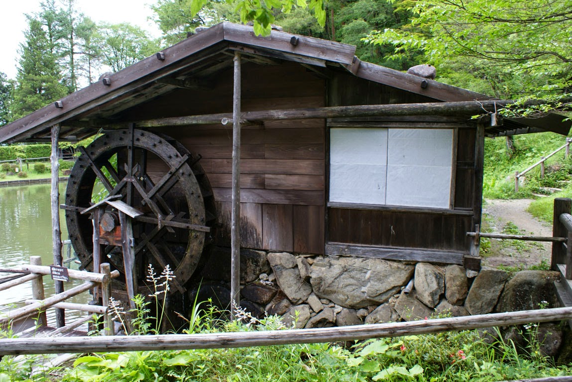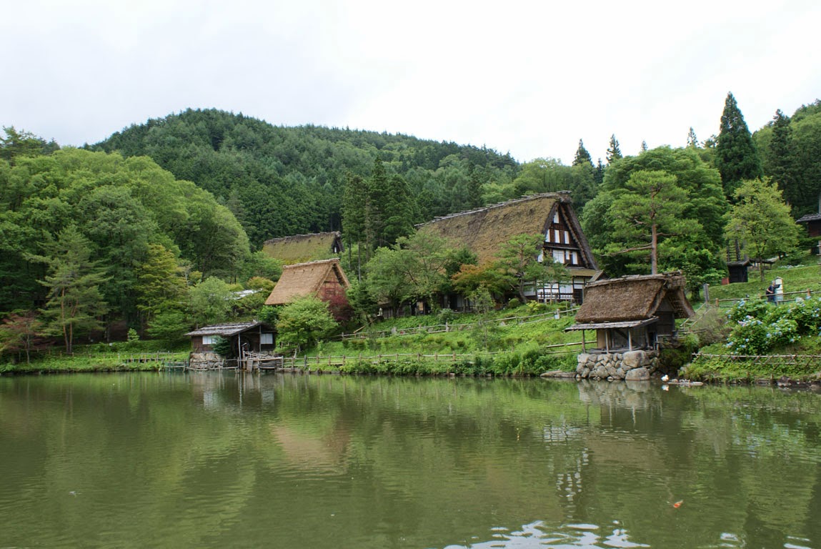 Em seguida, ida para o Hida-no-sato, um museu ao ar livre que reúne diversas casas tradicionais da zona. O local onde estão instaladas é, como não podia deixar de ser, privilegiado, rodeado de montanhas (mais verde) e com um belo lago no centro. Aqui podemos apreciar vários exemplos da arquitectura do século passado e sentirmos como era a vida rural então. Os telhados típicos estão todos eles preparados para aguentar a forte neve. E dentro das casinhas, que podem ser de habitação ou quintas ou celeiros, testemunhamos como é uma casa de uma divisão imensa que graças às portas de correr sobre o tatami se vai transformando numa casa com as divisões que a cada momento vamos desejando ou precisando, como se tece ou acende o fogo. Estas casas são todas em madeira, reconstruções que foram trazidas para aqui.