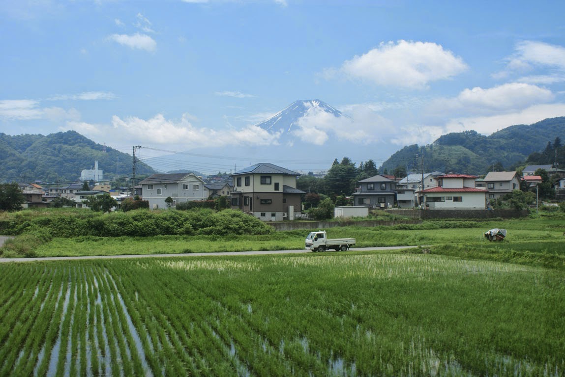 O Fuji-san, vê-se à distância, é soberbo na sua elegância. São 3776 metros de pura majestade, ainda salpicados neste mês de Julho aqui e ali com linhas de neve, que o tornam ainda mais distinto. Da janela do comboio, é impossível afastar o olhar da sua formosura cónica. Perfeito.