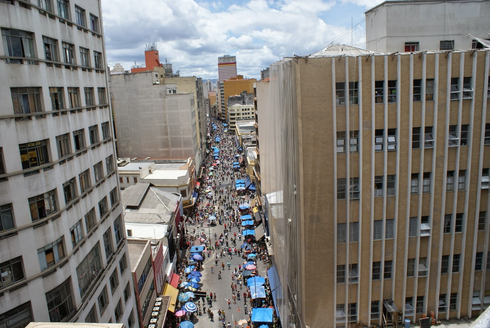 Primeiro, passamos rapidamente pelo mosteiro de S. Bento e atravessamos a ponte pedestre de Santa Ifigénia, em estilo art noveau, que passa por cima do Vale de Anhangabaú, para vislumbrarmos o centro e observarmos o edifício mais alto da cidade, o Vale do Mirante.