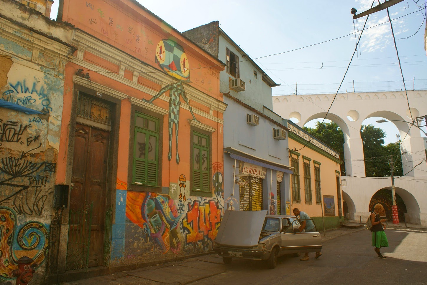 Andámos também no sopé do morro de Santa Teresa, onde fica a Lapa, bairro historicamente da boémia carioca. Em tempos idos era aqui o epicentro da malandragem, cujos malandros tinham paixão pela noite, música, jogo, boémia e pelas mulheres (sobretudo prostitutas). Como a novela Kananga do Japão mostrou, passavam as noites nas gafieiras, a dançar, vestiam-se a rigor com fato e chapéu branco estilo Panamá e frequentemente brigavam.