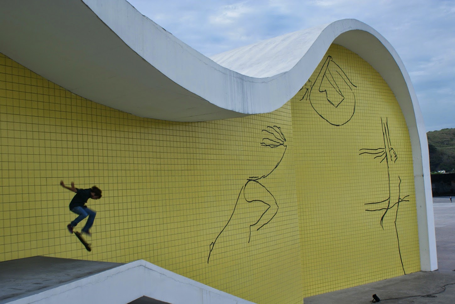 A face oposta do edifício é composto azulejos amarelos e pinturas do arquitecto. No piso superior o túnel que faz a transição entre as duas fachadas apresenta também uma composição de azulejos, brancos, com pinturas também de Niemeyer.