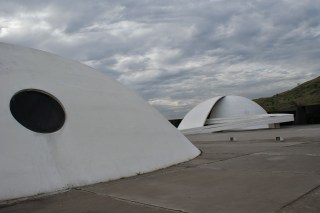 O edifício parece um ovni acabado de aterrar, mais ainda pela sua localização, na extremidade de um promontório.