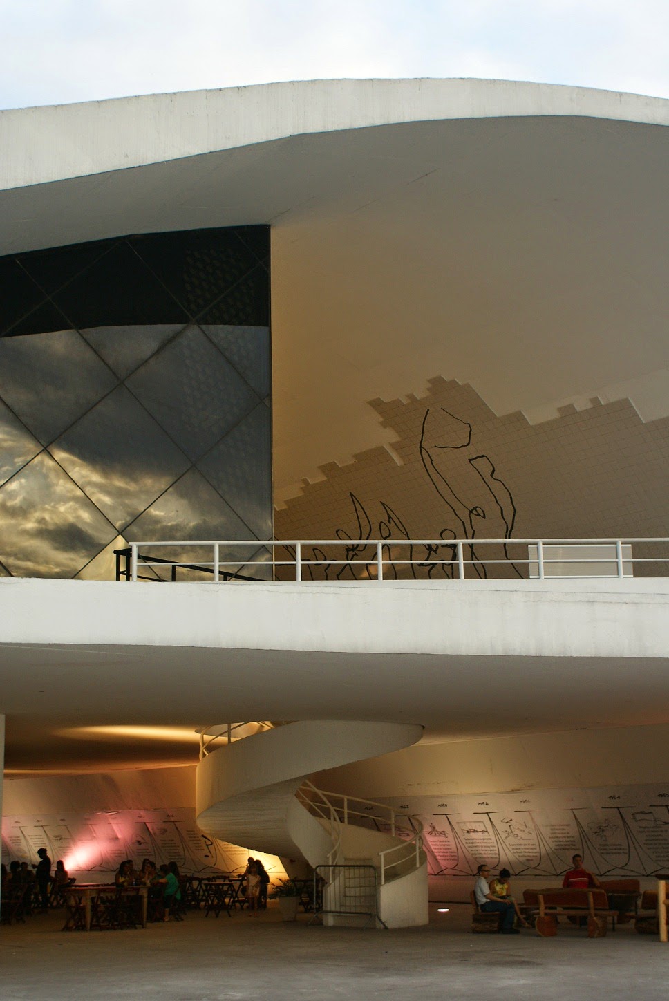 No vazado do edifício encontra-se um painel com a cronologia das principais obras de Niemeyer e existe um café com esplanada.
