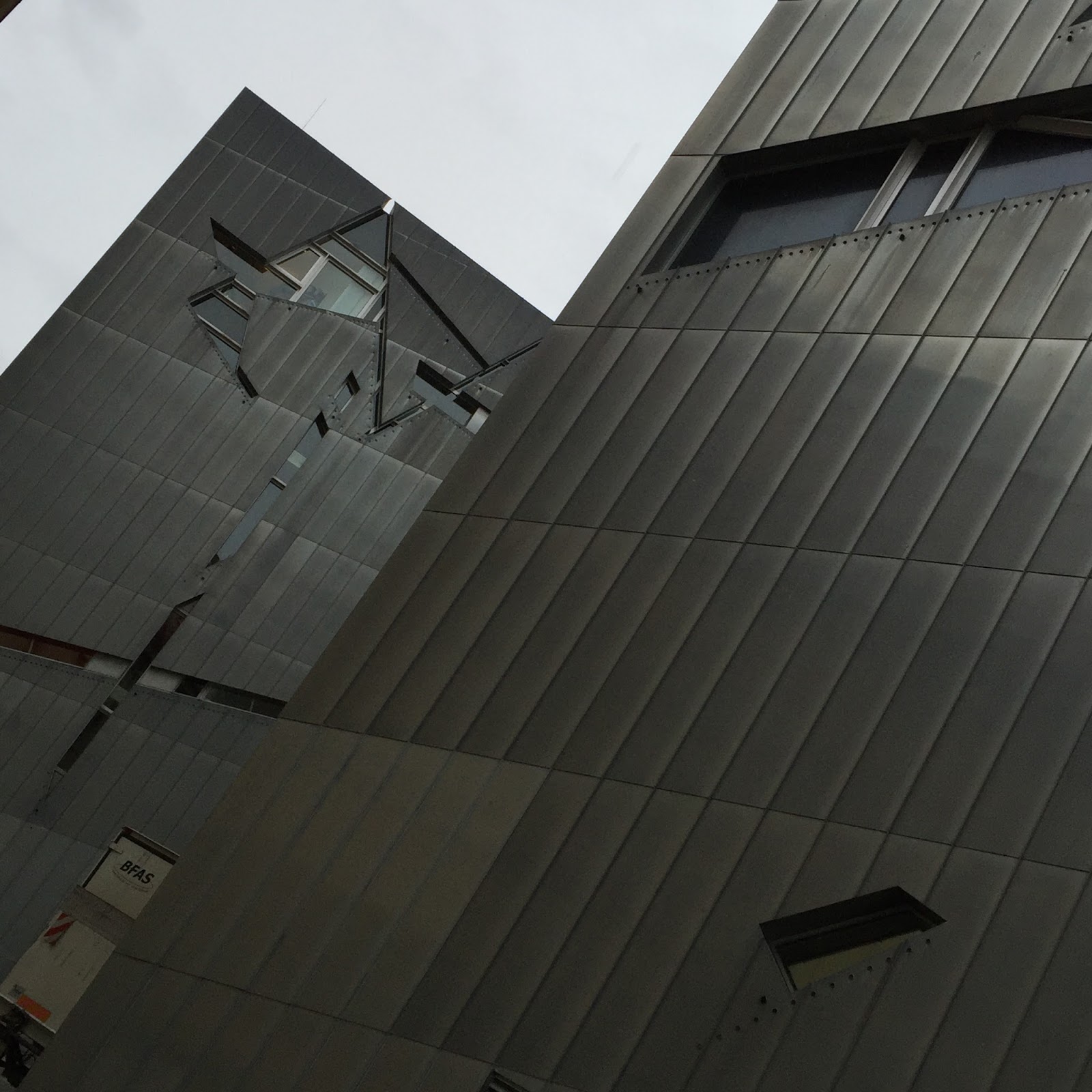 O edifício de Libeskind, apesar de só de uma perspectiva aérea se perceber, tem uma forma em ziguezague.