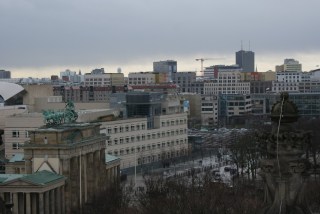 Doutra perspectiva vê-se também o Tiergarten e a Potsdamer Platz com a cúpula do Sony Center e o edifício do Deutsch Bank.