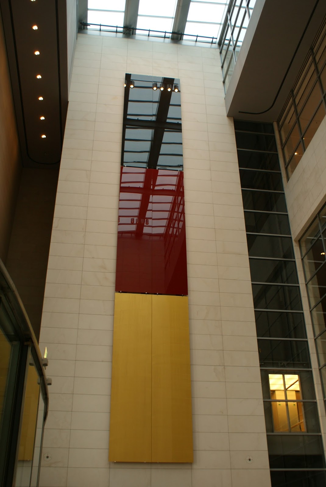 Logo à entrada damos com uma obra de Gerhard Richter. Trata-se de uma composição multicromática de 21 metros de altura por três metros de largura, com as três cores da bandeira da Alemanha. Obra muito elegante e denunciadora do que viria a seguir.