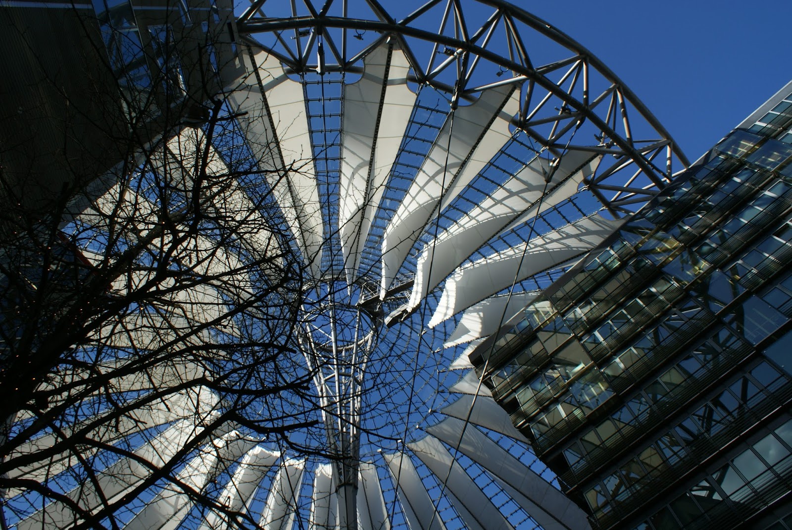 A cúpula da praça central do Sony Center, desenhada por Helmut Jahn, é provavelmente o elemento mais icónico da Potsdamer Platz. Inspirada no Monte Fuji, é feita de vidro e aço e rompe céu acima, pelo que é visualmente muito forte.