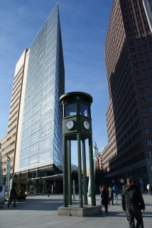 À frente da Kollhoff Tower, fica uma réplica do semáforo mais antigo da Europa, que teve como primeira morada este local.