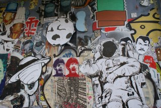 Ainda em Friedrichshain, na Boxhagener Strasse, encontramos o Diary / Guestbook. Num dos lados do cinema Intimes, encontramos uma parede com uma profusão imensa de trabalhos. O nome Diary / Guestbook deve-se ao conceito de ser um espaço em permanente mudança.