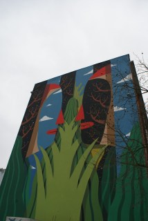 Ainda em Kreuzberg, cruzamo-nos com Two Landscapes, de Agostino Iacurci, criado pelo 25º aniversário da queda do Muro e que representa os aspectos humanos da reunificação.