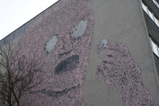 Do outro lado do rio Spree, em Kreuzberg, encontramos alguns dos nomes maiores da arte urbana, como Blu, com o seu Leviathan.