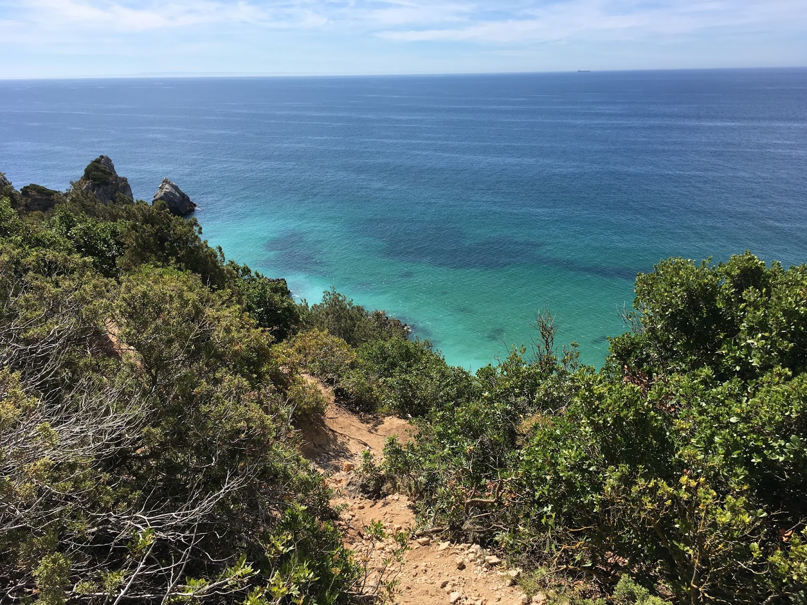 Continuando pelo Porto de Abrigo de Sesimbra fora por uma estrada de terra batida que nos deixa com uma vista privilegiada para o Oceano, talvez possamos encontrar um carro ou outro estacionado umas centenas de metros mais à frente. É aí que temos a certeza que começa o trilho pedestre da descida para a praia dos nossos sonhos.