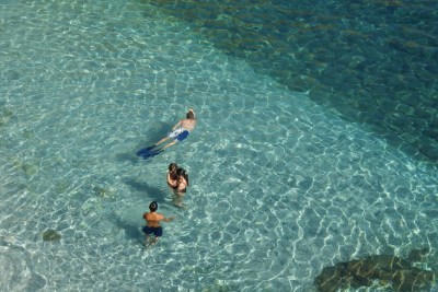A água quente faz com que nos percamos no mundo subaquático. O Mediterrâneo não é o melhor dos mares para incursões subaquáticas, mas ainda assim é sempre um deslumbre perseguir os cardumes de peixes.