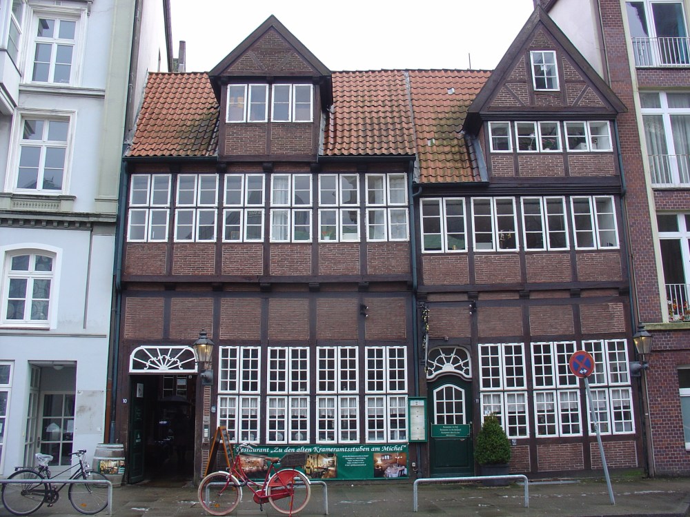 Junto a esta igreja fica o Krameramtsstuben, uma pequena passagem – que facilmente passa despercebida – para um beco onde encontramos uma colecção de casas de madeira do século XVII. São as mais antigas e dos poucos exemplares que restam na cidade e, neste caso, foram construídas para as viúvas dos membros da guilda (associação) dos pequenos lojistas. Esta passagem é estreitíssima, de tal forma que é difícil chamar pátio ao espaço entre estas pequenas casas, hoje transformadas em lojas, galerias e restaurantes.