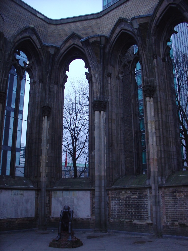 Seguindo o percurso dos canais, e de volta à Altstadt, a torre da antiga igreja St Nikolai mantém-se para contar parte da história da cidade. Reconstruída em 1874, após a destruição pelo grande fogo de Hamburgo, na altura era o edifício mais alto da Europa. Mais tarde, a igreja foi destruída quase por completo pelos bombardeamentos aéreos dos Aliados em 1943, durante a II Grande Guerra Mundial, e as suas ruínas impressionam, cumprindo o papel de recordar esse tempo negro da história mundial. O lugar está, assim, transformado em memorial, relembrando as vítimas da tirania, subsistindo a torre da igreja, ainda hoje um dos edifícios mais altos de Hamburgo.