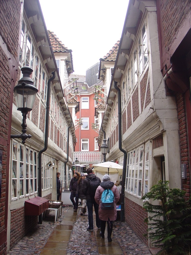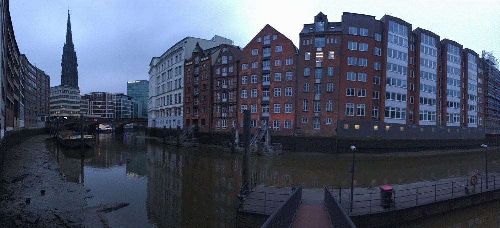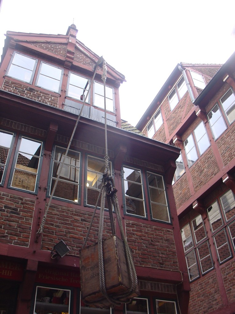 Aqui perto fica a Deichstrasse, a rua onde teve início o grande fogo de 1842 que destruiu grande parte de Hamburgo. Hoje o encanto desta rua ocupada por restaurantes e edifícios que não iludem é o de espreitar pelas ruas estreitas que dividem as paredes desses edifícios e descobrir o canal que está para além deles.
