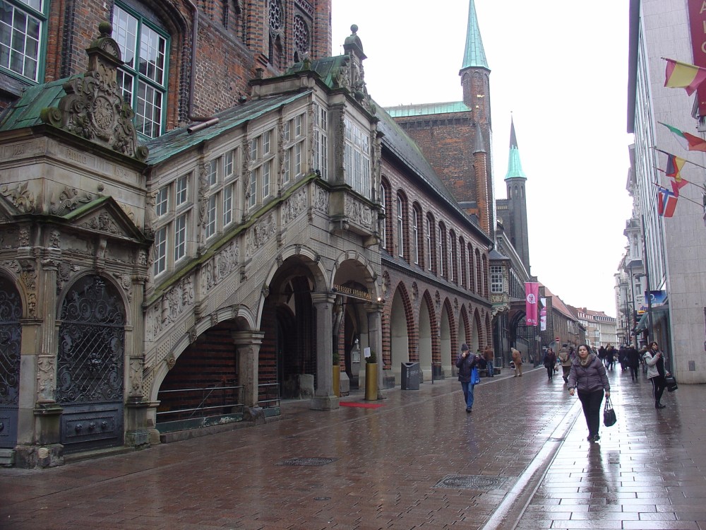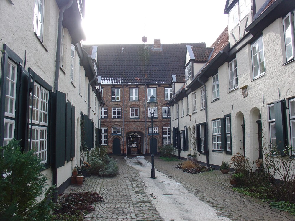 O pátio da Willy Brandt Haus dá para o pátio da Günter Grass Haus e por esta zona da cidade todo um novo mundo se nos apresenta. Com a igreja Sankt Katharinen a reinar quase soberana, e colada a ela mais uns exemplos de edifícios de tijolo, como se de uma composição se tratasse, nesta rua, a Glockengiesser Strasse, encontramos uma série de surpreendentes pátios e passagens (Höfe e Gänge). Para lá das ricas e trabalhadas fachadas de edifícios de ricos mercadores ficam pátios ocupados com uma espécie de casas sociais por eles construídas. Era a Lübeck do século XVII para os mais desfavorecidos.