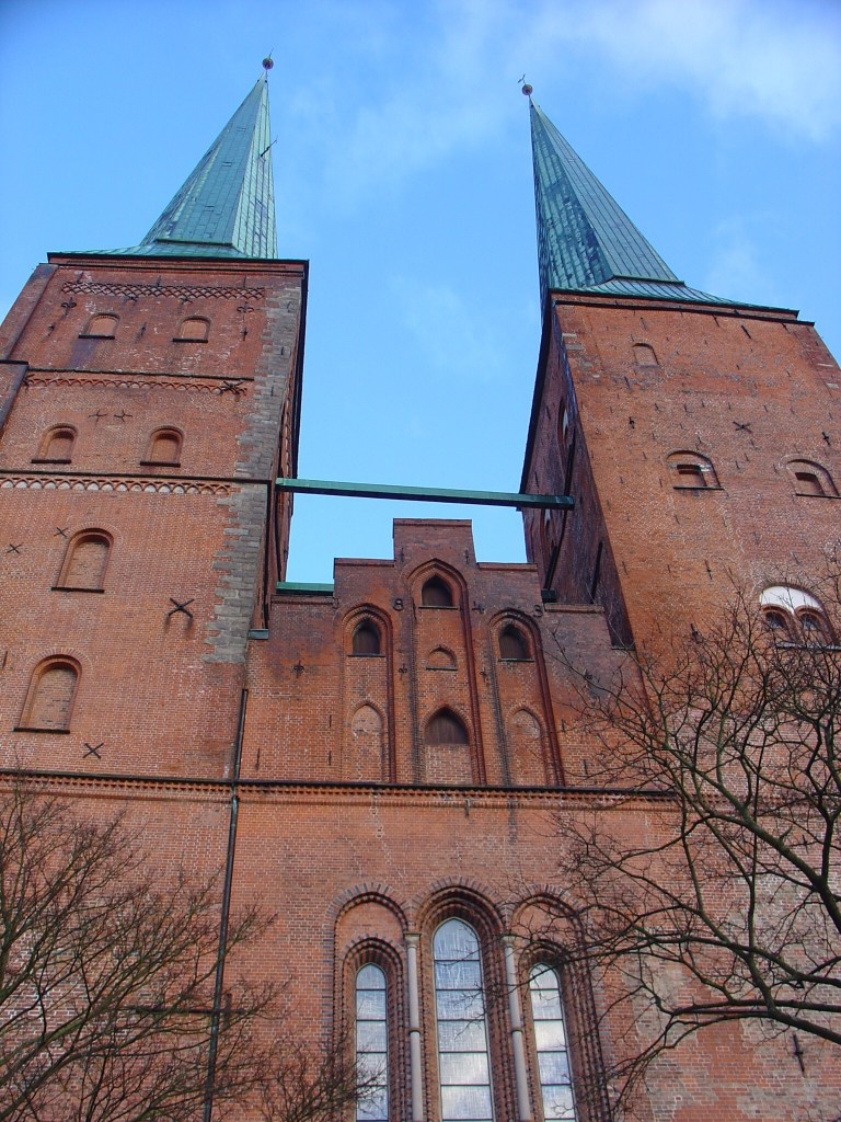 Um primeiro, para conhecer a Igreja de Santa Maria. São “apenas” sete as suas torres, que levaram a que Lübeck ficasse conhecida também como a “cidade das sete esferas”. Esta que é a terceira maior igreja da Alemanha, construída por volta de 1200 como uma basílica romanesca em tijolo que 50 anos depois foi tornada catedral gótica, é a mãe das igrejas em estilo tijolo gótico e serviu de modelo para muitas outras igrejas que se lhe seguiram na região do Báltico.