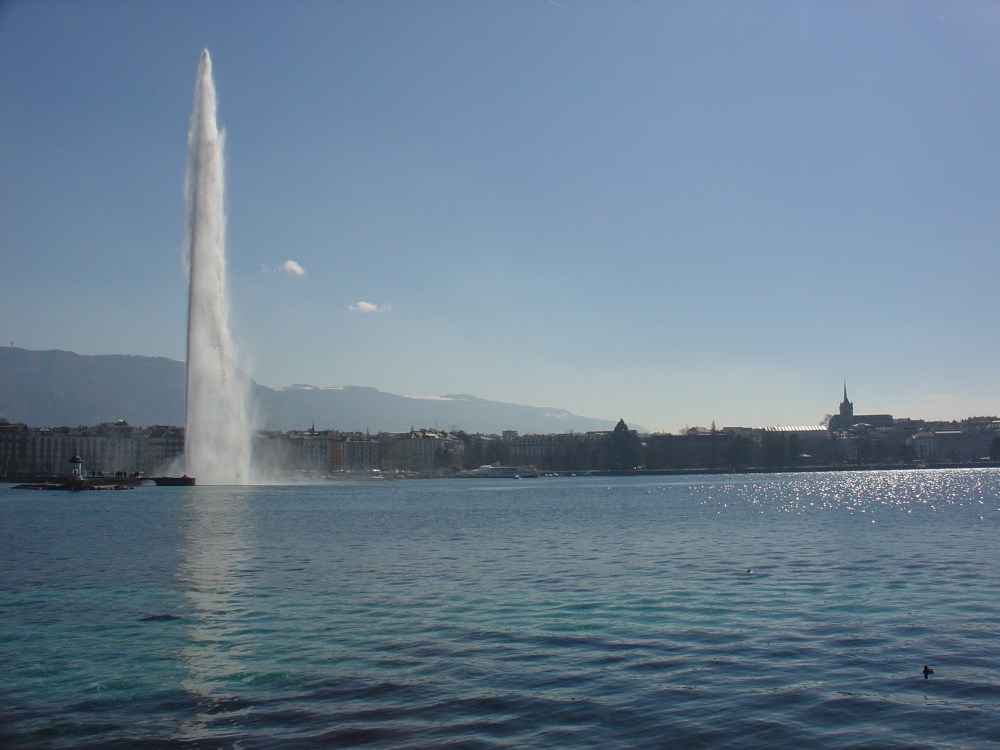 O Jet d’ Eau é, provavelmente, o maior símbolo de Genebra. Jacto de água, à letra, é uma torrente de água enviada para os céus, cerca de 500 litros por segundo até uma altura de 140 metros. É tão dominante que se avista de qualquer ponto do lago junto à cidade e mesmo desde ruas interiores.