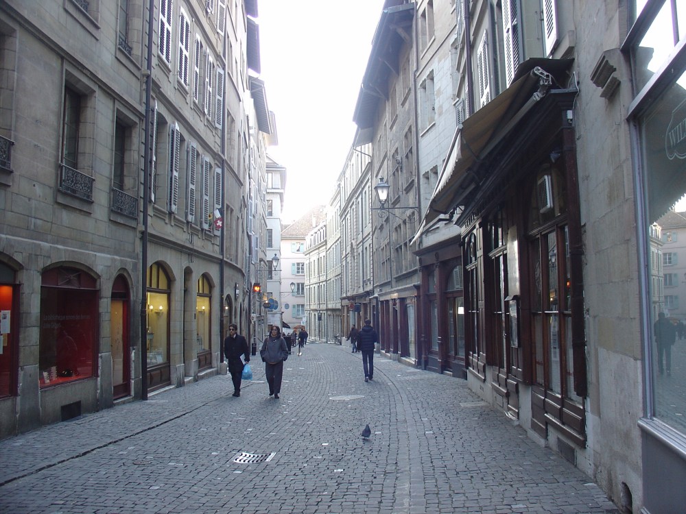 Após um breve passeio pela Rua du Marché, a rua das compras, entramos na Vieille Ville, a cidade velha. Para lá chegarmos subimos um pouco e com surpresa percebemos, então, que a cidade começou por ser construída numa encosta. O centro histórico de Genebra é pequeno mas possui um ambiente único.
