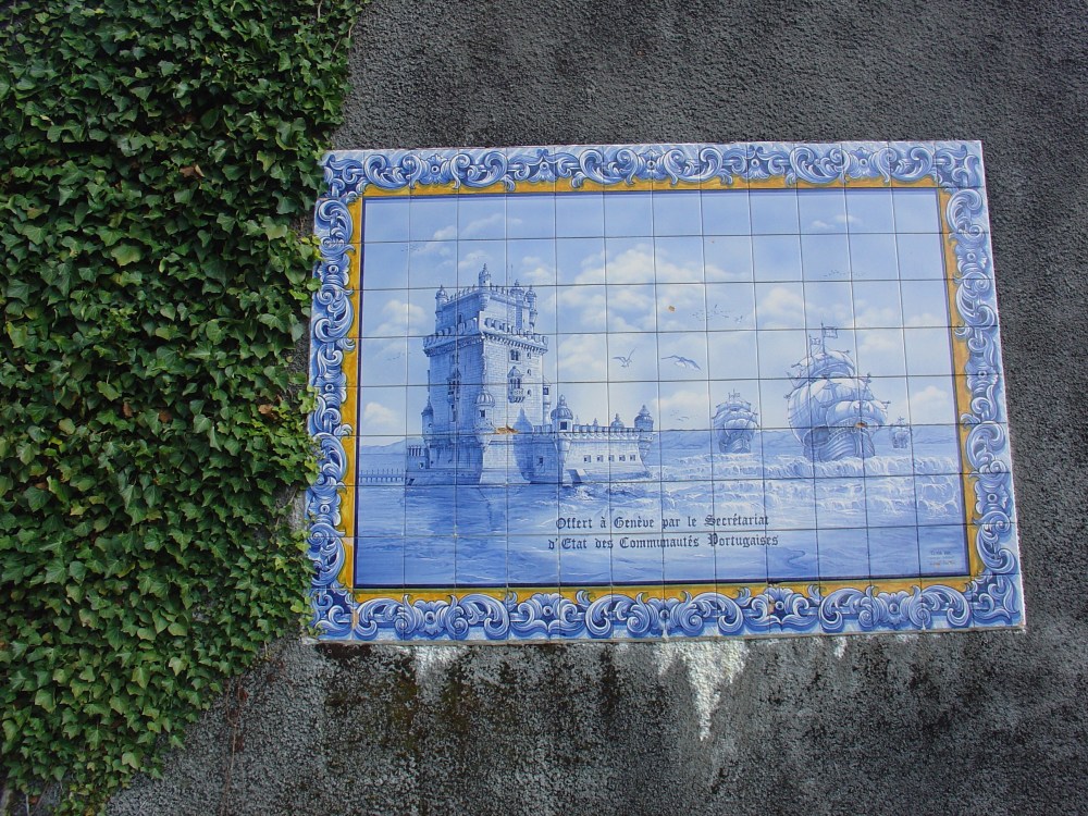 Por aqui vamos caminhando com a água novamente transparente por companheira, por um lado, e edifícios que ora mais parecem chalets ora são sede de diversas organizações internacionais – ou as duas coisas ao mesmo tempo -, pelo outro lado. No meio algumas esculturas e muito verde. Vemos árvores oferecidas por diversos países e até um painel de azulejos oferecido pelos nosso país.