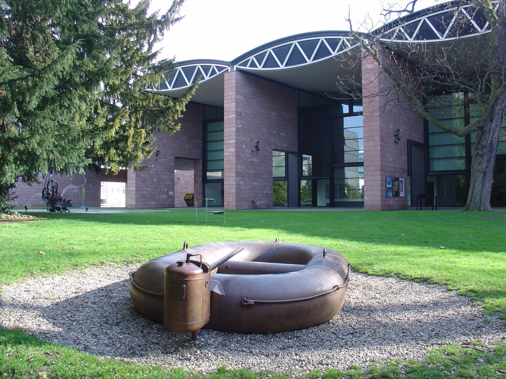 O Museu Tinguely fica aqui perto. Infelizmente estava fechado – já sabia ser terrível visitar a Alemanha na Semana Santa e fiquei a saber o mesmo para a Suiça – pelo que me tive de contentar em apreciar a arquitectura do edifício de Mario Botta apenas do exterior, em cujos jardins se podem ver também umas das esculturas cinéticas de Tinguely.