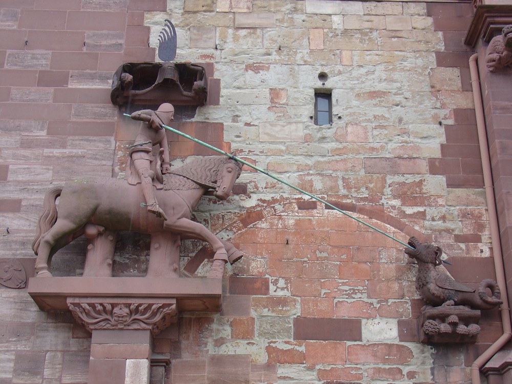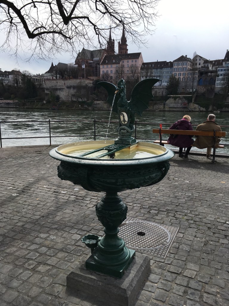 Termino este passeio por Basileia no mesmo local por onde o comecei, à beira Reno, com vista para a Catedral, mas agora com o dragão que é o símbolo da cidade como seu protector.