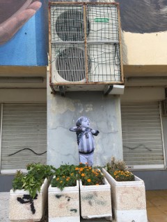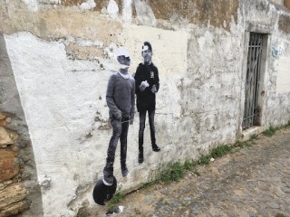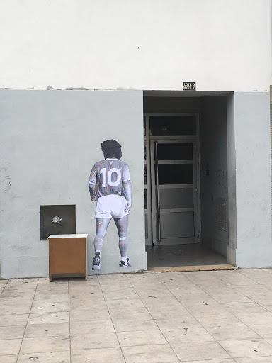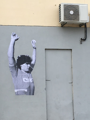Também em Marvila, no âmbito do Festival Muro 2017, algumas fotos da arte do argentino San Spiga. Esta bem mais efémera do que as pinturas nas empenas, pelo recurso a colagem. Hoje já não se veem estas imagens por inteiro, mas aqui ficam testemunhos desta tentativa de integração da arte urbana com as vivências do bairro, mesmo se recorrendo a ícones que a uma primeira vista nos podem parecer alheios (não tanto Maradona, mas mais Evita e as Madres da Praça de Maio).