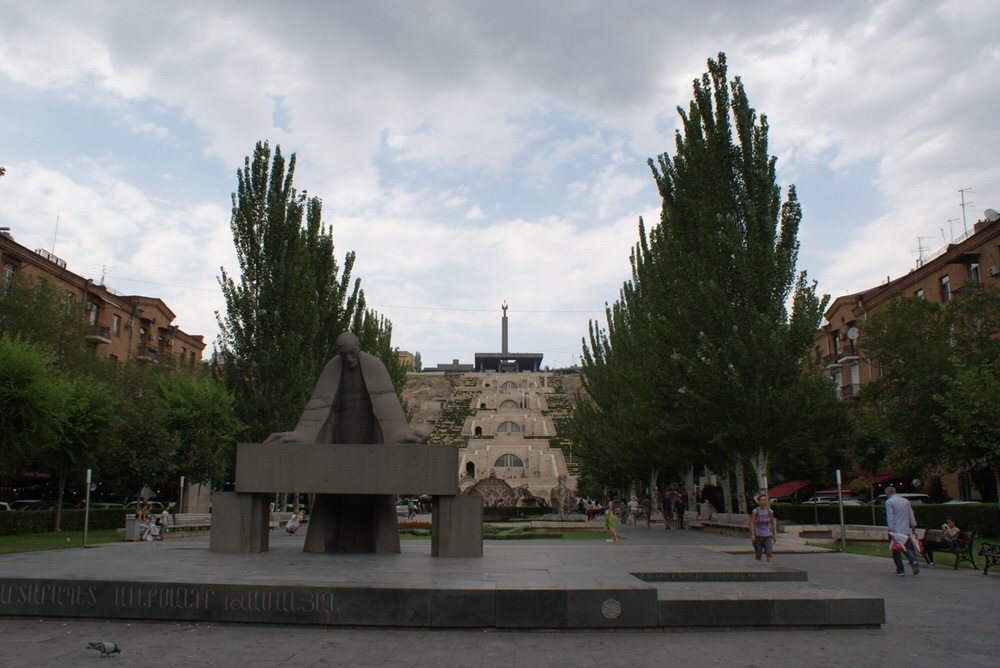 Aos seus pés vemos uma inspirada escultura representando Alexander Tamanyan, o criador da Yerevan do século XX.