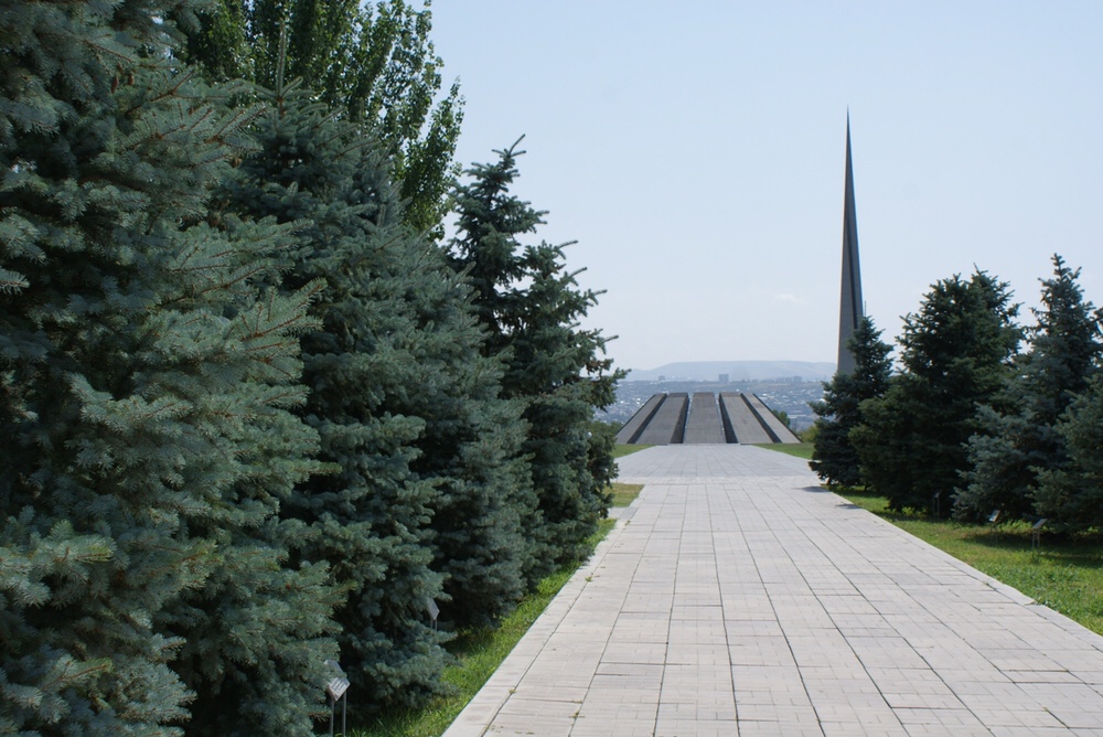 Dedicado às vítimas do genocídio dos arménios às mãos dos otomanos entre 1915 e 1922, este complexo que inclui memorial e museu é um testemunho lapidar da tragédia, mas também da resiliência, do povo arménio. O lugar, no topo de uma colina sobranceira ao centro da cidade, impõe silêncio e reflexão. Passamos por uma série de árvores plantadas por dignatários internacionais que reconheceram o genocídio, atravessamos um longo caminho ladeado por um muro de 100 metros com a inscrição dos nomes das comunidades assassinadas, observamos uma torre piramidal de 40 metros e ficamos, enfim, face às 12 lajes de basalto – representando as 12 províncias da Arménia Ocidental perdidas para a Turquia – que circundam e guardam a chama eterna acompanhada por uma coroa de flores. Ouve-se música coral. O memorial, construído em 1967, é de um simbolismo e de uma elegância profundas.
