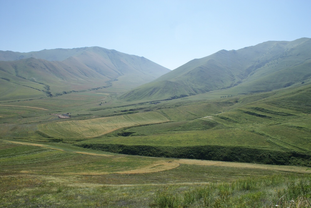 Entramos no Passo de Lori e o vale abrupto que se segue é de uma beleza de cortar a respiração. É um magnífico excesso de formas que as montanhas nos oferecem, com uma belíssima vegetação rasteira que transforma a região num verde infinito.
