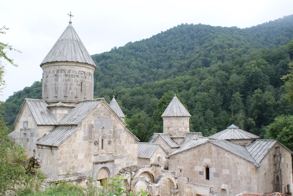 Já o de Haghartsin, literalmente “dança das águias”, tem mais uma daquelas localizações superlativas. Escondido na montanha cerrada de vegetação, as suas construções datam do século X a XIII, embora tenha sido promovida uma reconstrução recente um bocado esquisita de um dos seus edifícios. De qualquer forma, a integridade das suas igrejas mantém-se e vemos aqui umas sepulturas e khachkars bem bonitos.