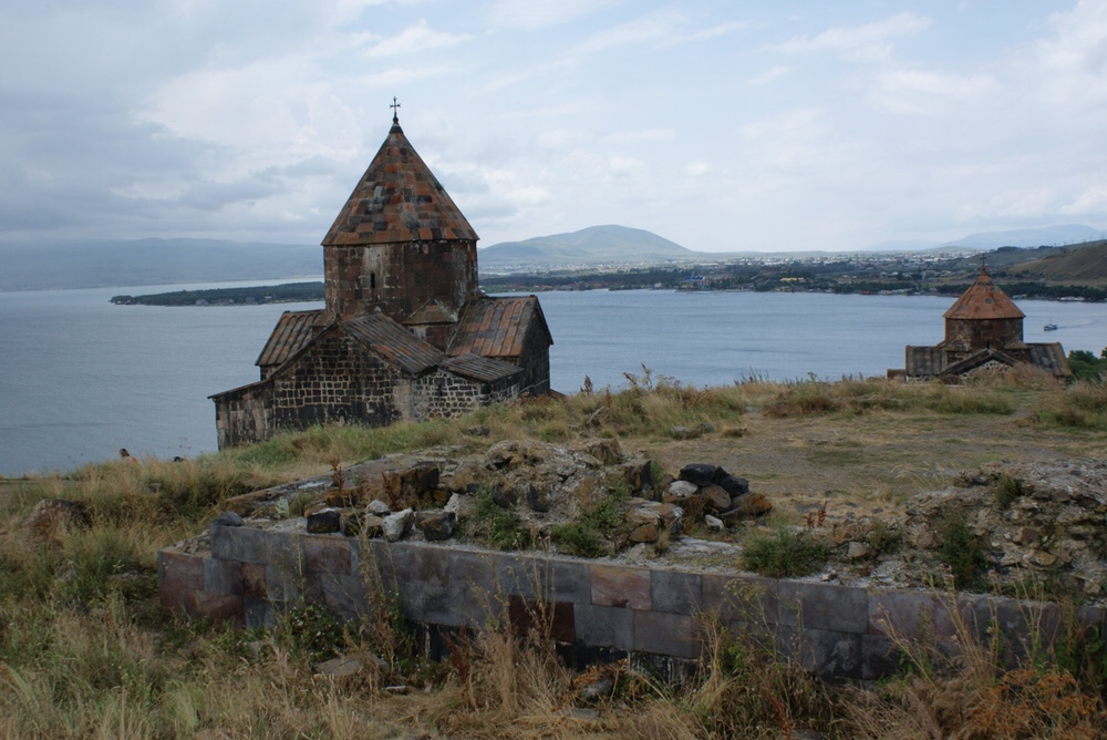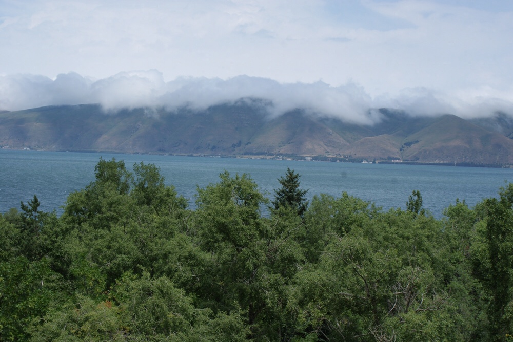 O Lago Sevan fica a 1900 metros acima do nível do mar, um dos mais altos do mundo, e possui cerca de 80 quilómetros de comprimento e 30 de largura. Corresponde a 80% dos recursos hídricos da Arménia, país que não têm acesso ao mar nem rios expressivos. Um amigo arménio a morar em Portugal tinha-me aconselhado a colocar bastante protector quando visitasse o Lago Sevan porque as águas do lago reflectem o sol de forma poderosa. Mas o tempo estava chuvoso. Não pudemos, assim, observar as suas intensas águas azuis, mas confirmámos que estas vão mudando de colorido conforme o clima. O maior lago do Cáucaso é bonito, mas o edificado por estas paragens é composto por estruturas feias e algumas abandonadas desde o tempo em que este era um resort para o qual vinha gente das várias repúblicas soviéticas. Hoje, os arménios endinheirados fogem para Batumi, no Mar Negro na Geórgia, deixando as praias do Sevan para quem não pode ir mais além.
