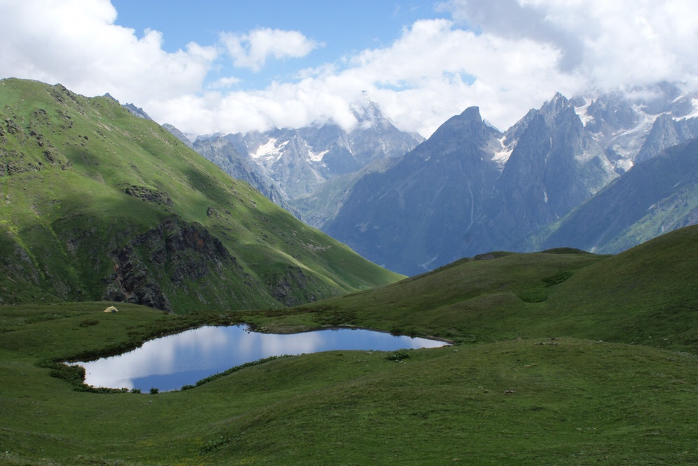 Os Koruldi são uma mão cheia de pequenos lagos aos pés do Monte Ushba. Há quem acampe aqui e não deve existir melhor forma de acordar do que esfregar os olhos e dar com aquele cenário imenso, mergulhar as mãos em concha nas águas de um dos lagos para lavar os olhos e ver o nosso rosto refletido no meio de um sem número de montanhas e, já bem acordado, confirmar que o panorama ao nosso redor é mesmo real.