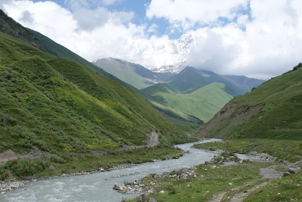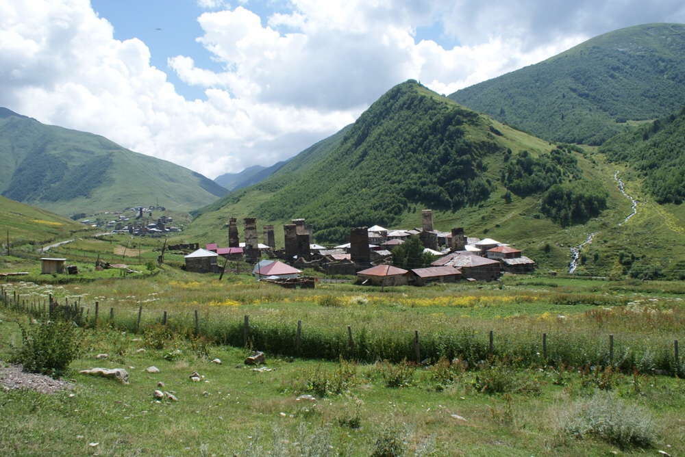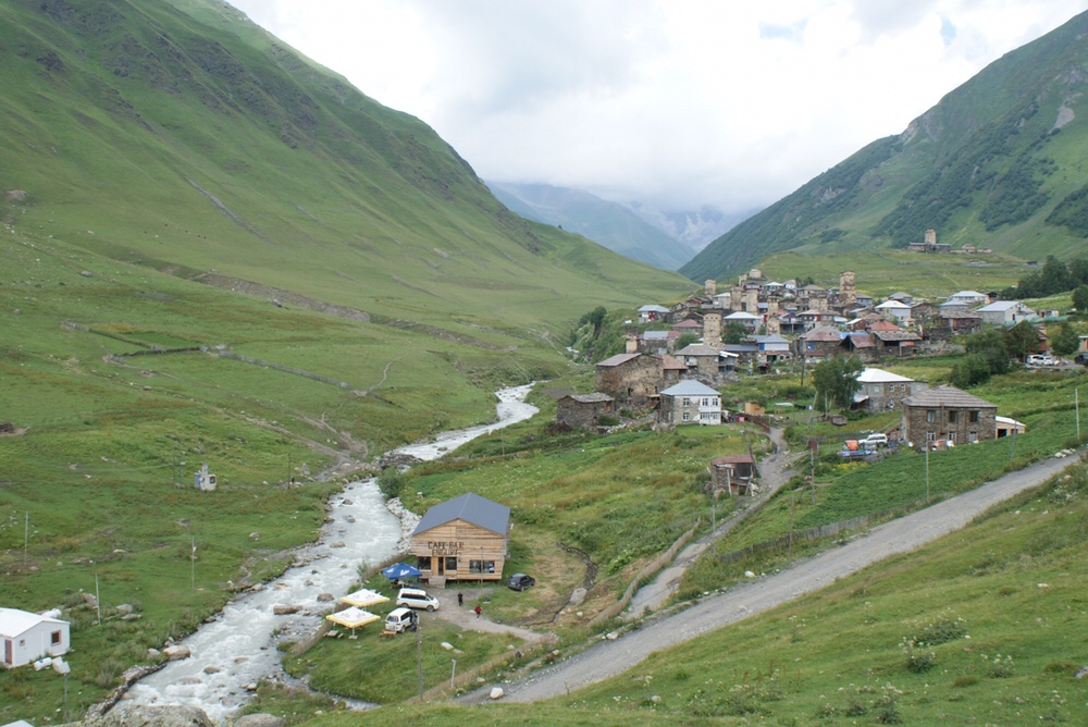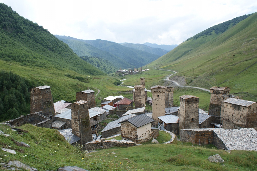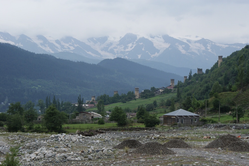 O caminho até Ushguli transporta-nos por paisagens fantásticas, incluindo uma visão do Monte Chkhara, o mais alto da Geórgia. Paisagem de montanhas, o rio Enguri por vezes ali mesmo à beira e por outras apenas avistado depois de uma olhada por um desfiladeiro mais ou menos alto, água a escorrer das paredes xistosas e umas pequenas povoações, cada uma delas com as suas torres svans.