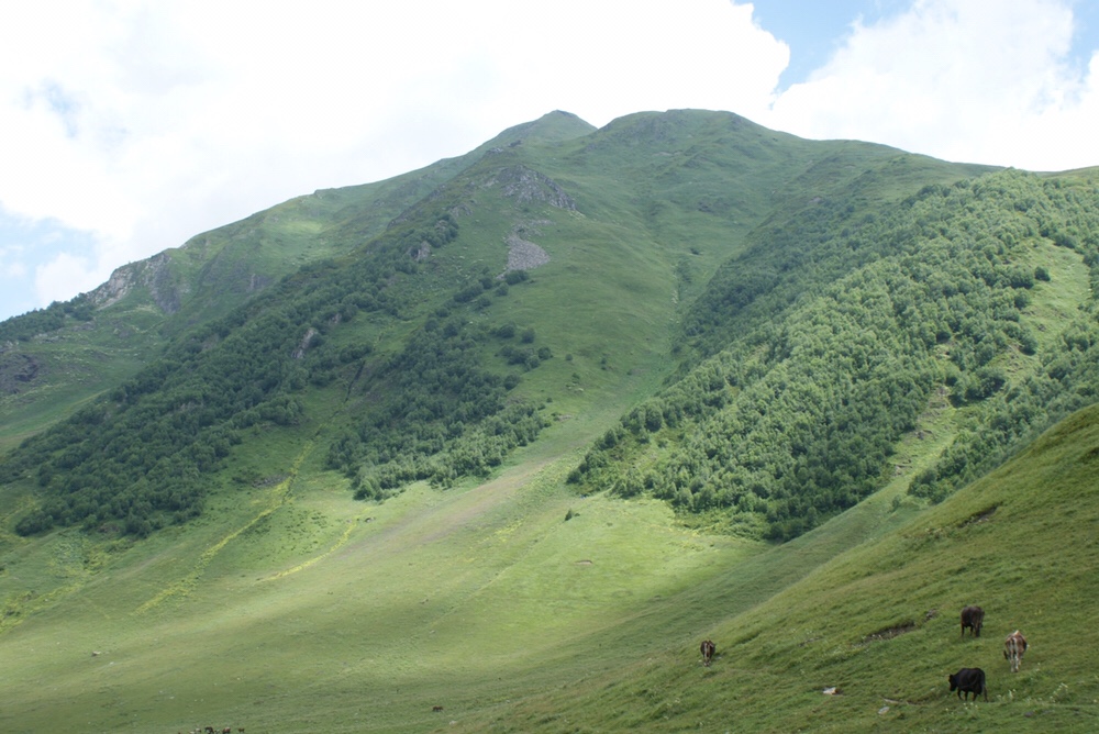 A estrada que sai de Zugdidi rumo a norte faz-nos passar bem junto à Abecásia. O conflito entre esta província separatista e a Geórgia, decorrido em 1992-93, deixou marcas e uma delas foi o êxodo dos seus habitantes para Zugdidi. Mas no caminho não se veem homenagens aos mortos desta guerra, antes se veem memoriais levantados aos georgianos que caíram na II Grande Guerra Mundial 1941-45. O ambiente não é pesado, porém. À beira da estrada encontramos velhinhos à conversa sentados em cadeirinhas de madeira. E a paisagem vai-se apresentando. As montanhas vão crescendo, ao nosso lado repousa uma barragem de cor indefinida entre o azul e o verde que, mais adiante, dá lugar a um rio estreito que corre rebelde procurando furar as pedras que lhe aparecem no caminho. Pelo meio, muitas quedas de água.